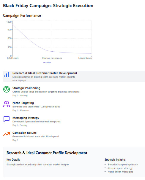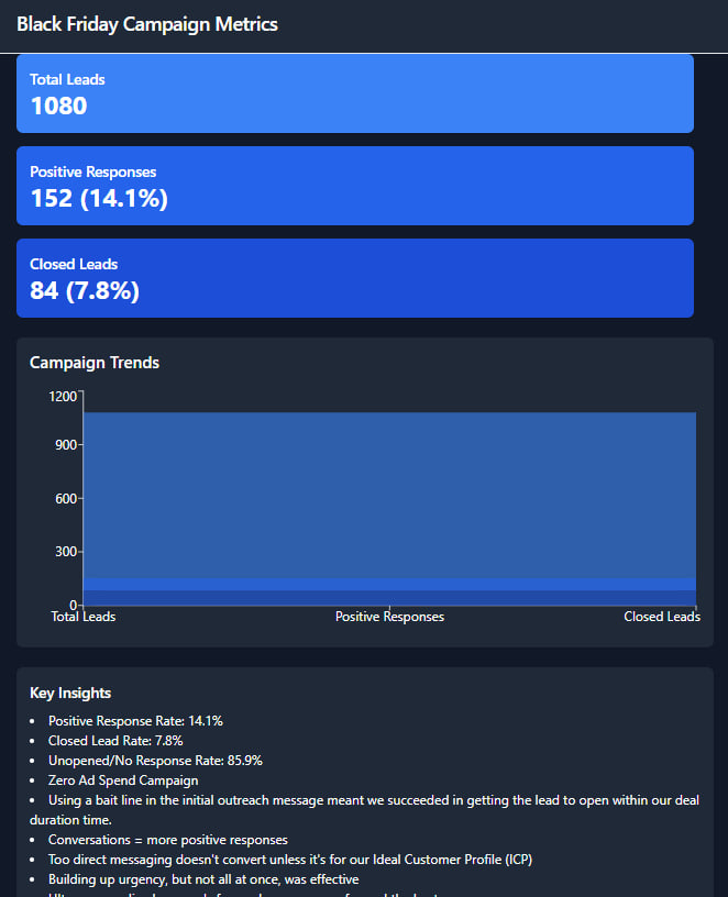 Most businesses chase sales during Black Friday. We focused on building the brand. Whether or not these leads converted immediately, the groundwork was laid for future collaboration and how we are percieved.⠖⠕Timing Is Key